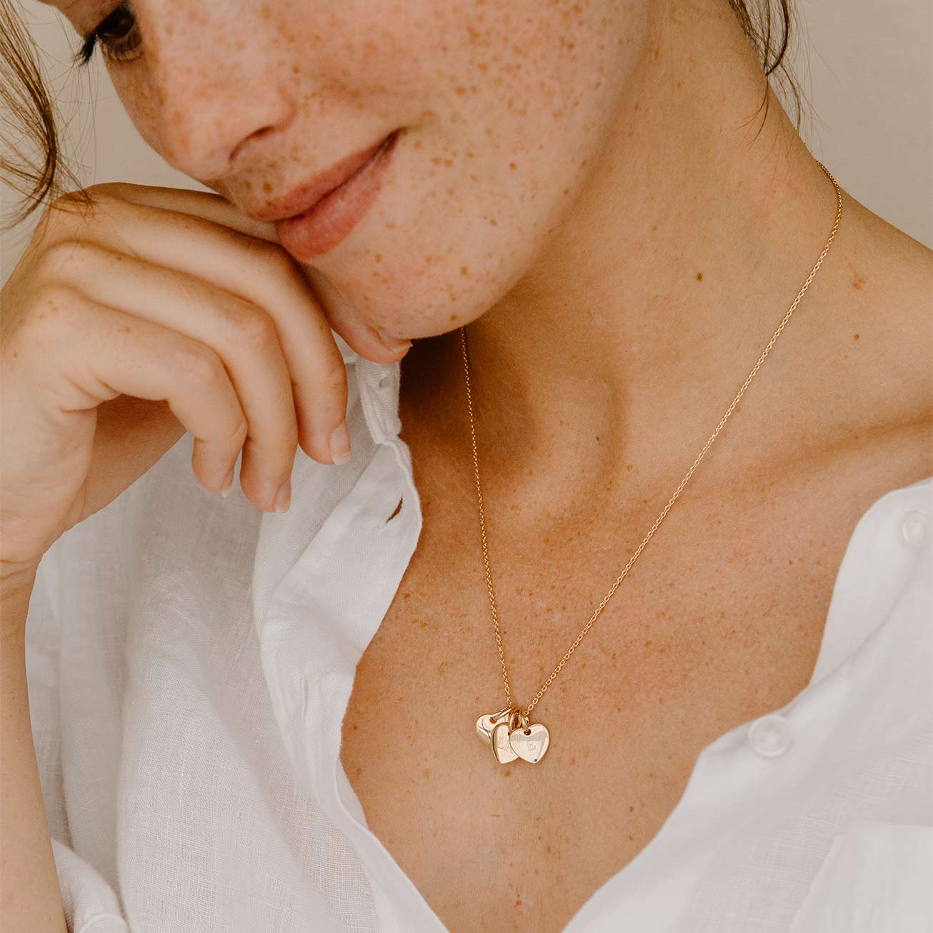 Podéis componer vuestro collar personalizado con estos dulces pequeños corazones chapados en oro rosa 18 quilates, sobre los cuales podréis grabar las iniciales que queréis. Las de vuestros hijos, de vuestro novio, de vuestras hermanas, de vuestras amigas…