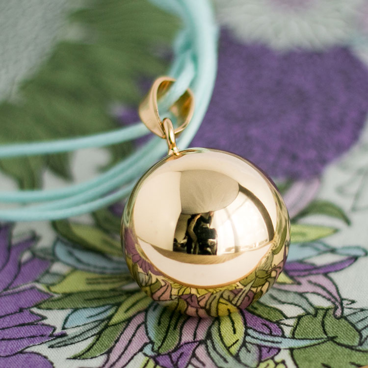 Con su bonito cordón encerado de color turquesa, la bola va a sublimar la ropa de las futuras mamás.