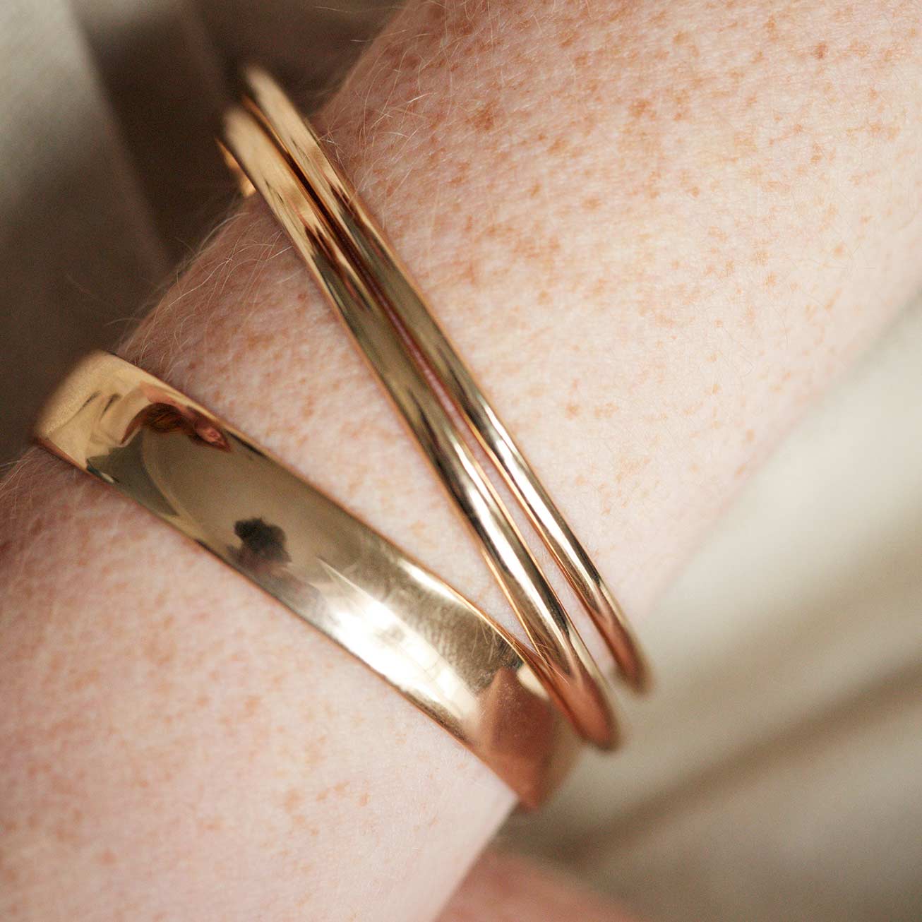 Esta pulsera brazalete chapada en oro de 18 quilates añadirá encanto a tu muñeca.